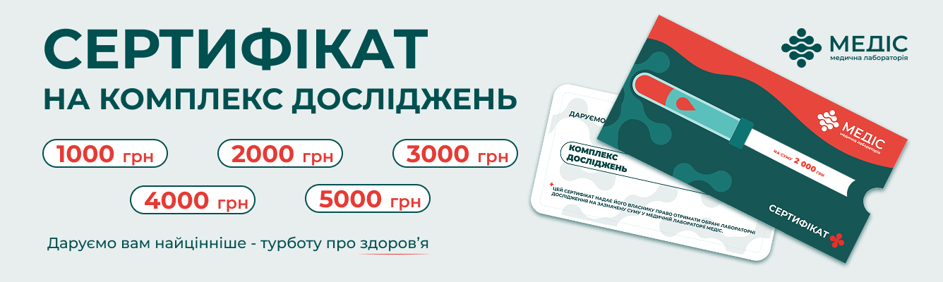 У медичній лабораторії Медіс тепер доступні сертифікати на комплекс досліджень номіналом 1000, 2000, 3000, 4000 та 5000 грн.
